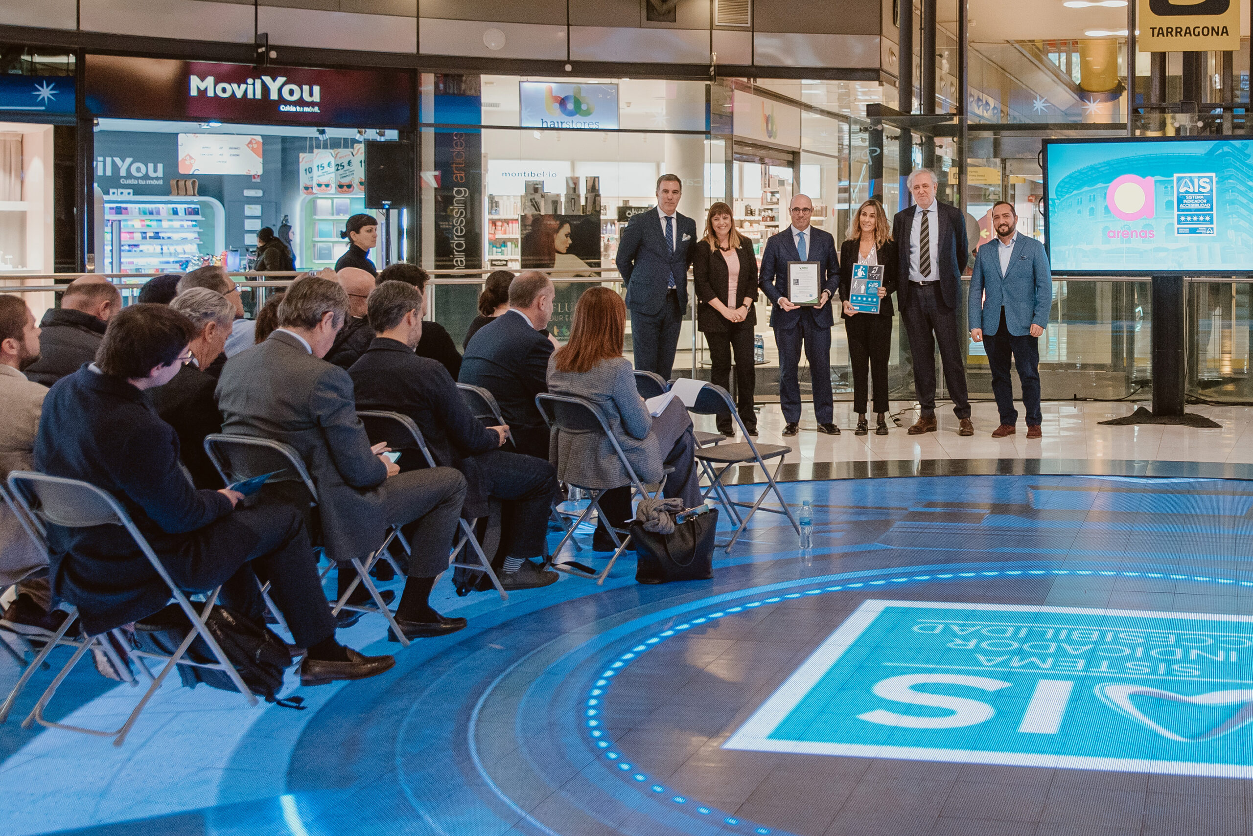 Por último, y como colofón a la jornada, Ignacio Lucini, Patrono de Fundación para la Accesibilidad y la RS, hizo entrega oficial de la placa 5 Estrellas AIS a Luis Lázaro y a Amalia Marco, Gerente del centro comercial Arenas de Barcelona, en presencia de Alejandro García, Director General de IMQ Ibérica.