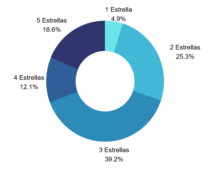 AIS es un certificado gradual, que cuenta con cinco niveles de excelencia en accesibilidad, de 1 a 5 Estrellas. En ese sentido una de las buenas noticias que arroja el balance de 2022 es que los certificados que se sitúan en 3 Estrellas, donde el sistema marca el amplio cumplimiento normativo, y en grados superiores son cerca del 70% del total de emisiones, lo que muestra el alto compromiso de las empresas certificadas con AIS en la mejora de sus activos en materia de accesibilidad.